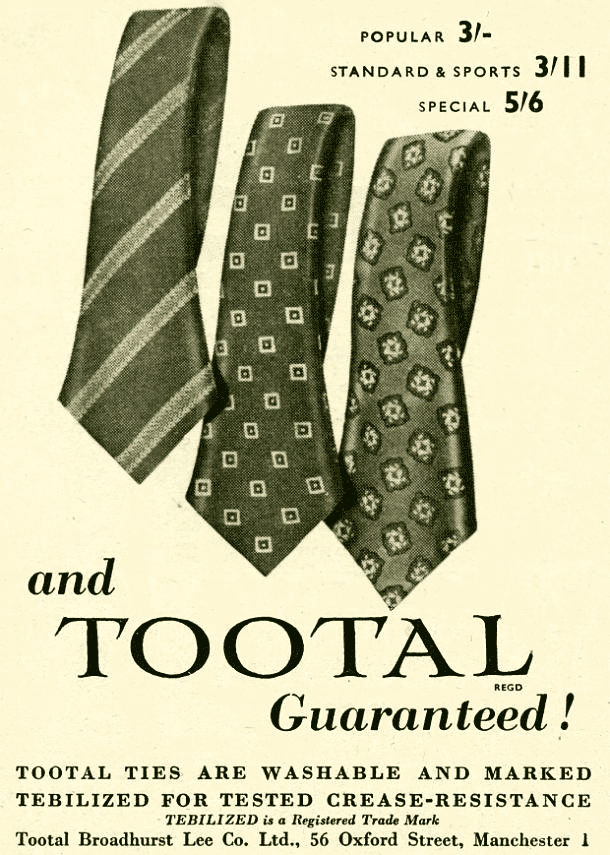 Before World War II, the company was among the largest in the region, operating spinning, weaving, and dyeing factories in Bolton, Newton Heath, and Manchester. It produced silk, wool, handkerchiefs, and ties. “Tootal Broadhurst Lee” also expanded its market reach, opening branches in Belfast, Birmingham, Leeds, London, and Glasgow. International branches were established in Argentina, Australia, Canada, France, and New Zealand. After the war, the company opened a new factory in Tasmania.